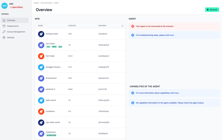 Ensure that the agent has the necessary network connectivity to access both the API Control Plane backend, as well as your API gateway(s). This may involve verifying network configuration settings such as IP addresses, DNS servers, and gateways to ensure that the agent can reach its destination servers.