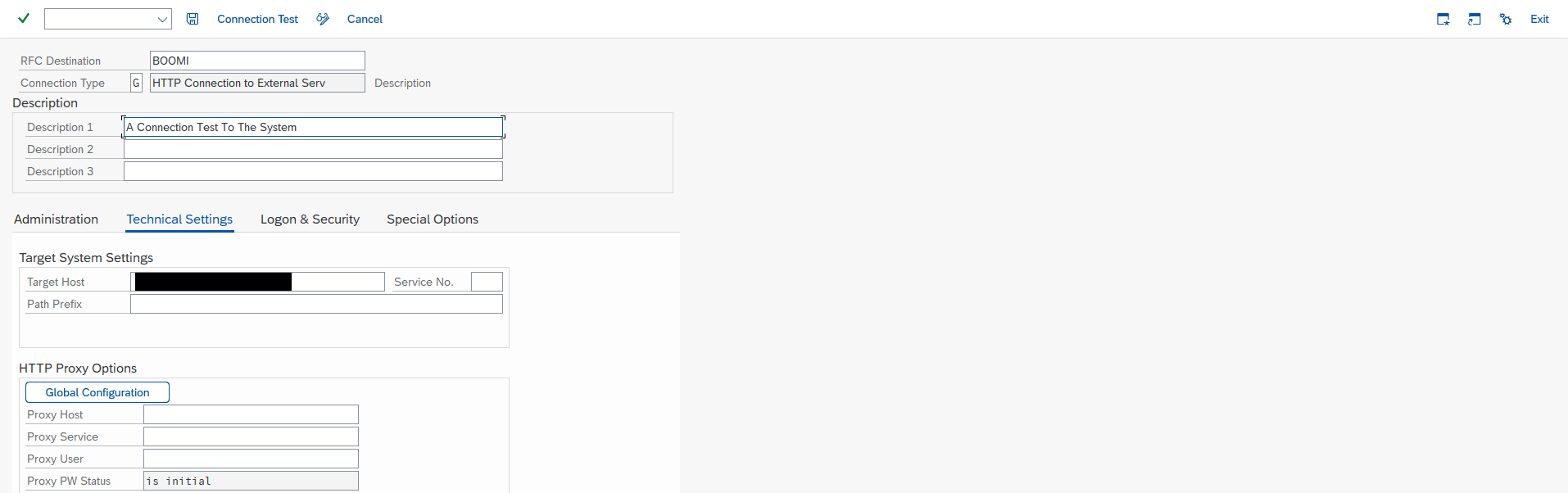 This guide outlines the process of establishing an RFC connection in SAP to link with a Boomi basic runtime using Basic authentication. Keep in mind that your configuration may vary if you opt for a different authentication method, employ a reverse proxy, or utilize a load balancer.