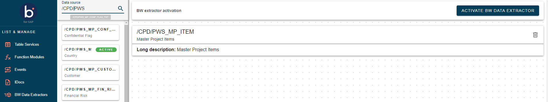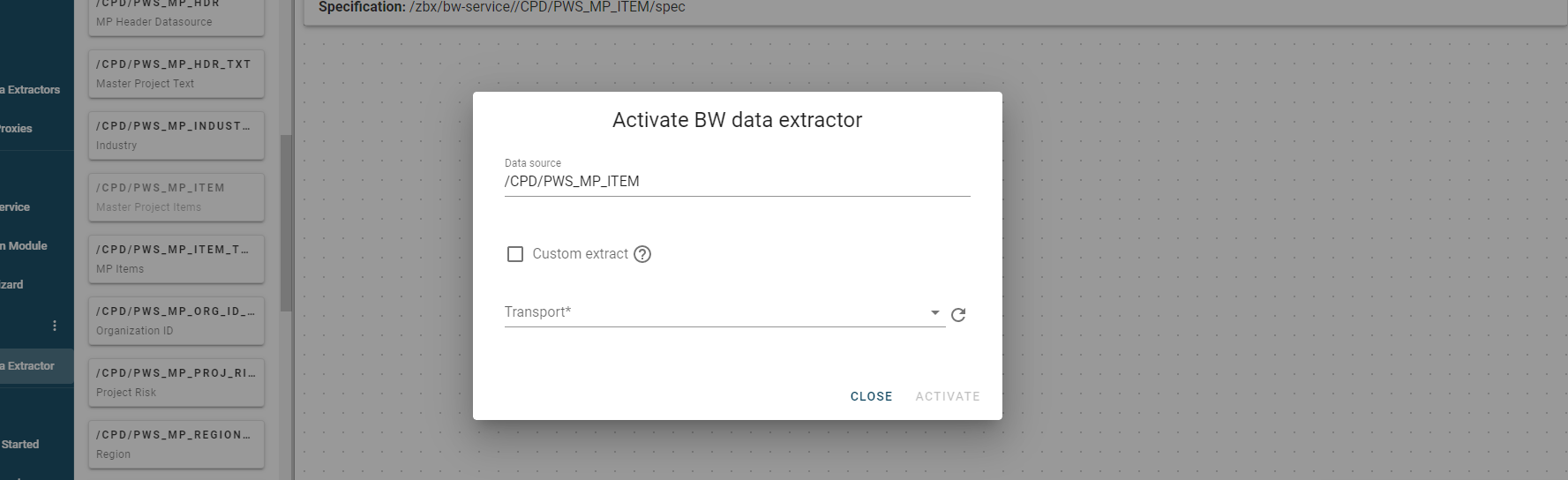 - The data extractor is now in the BW Data Extractor menu. You can send it via ZBX007.