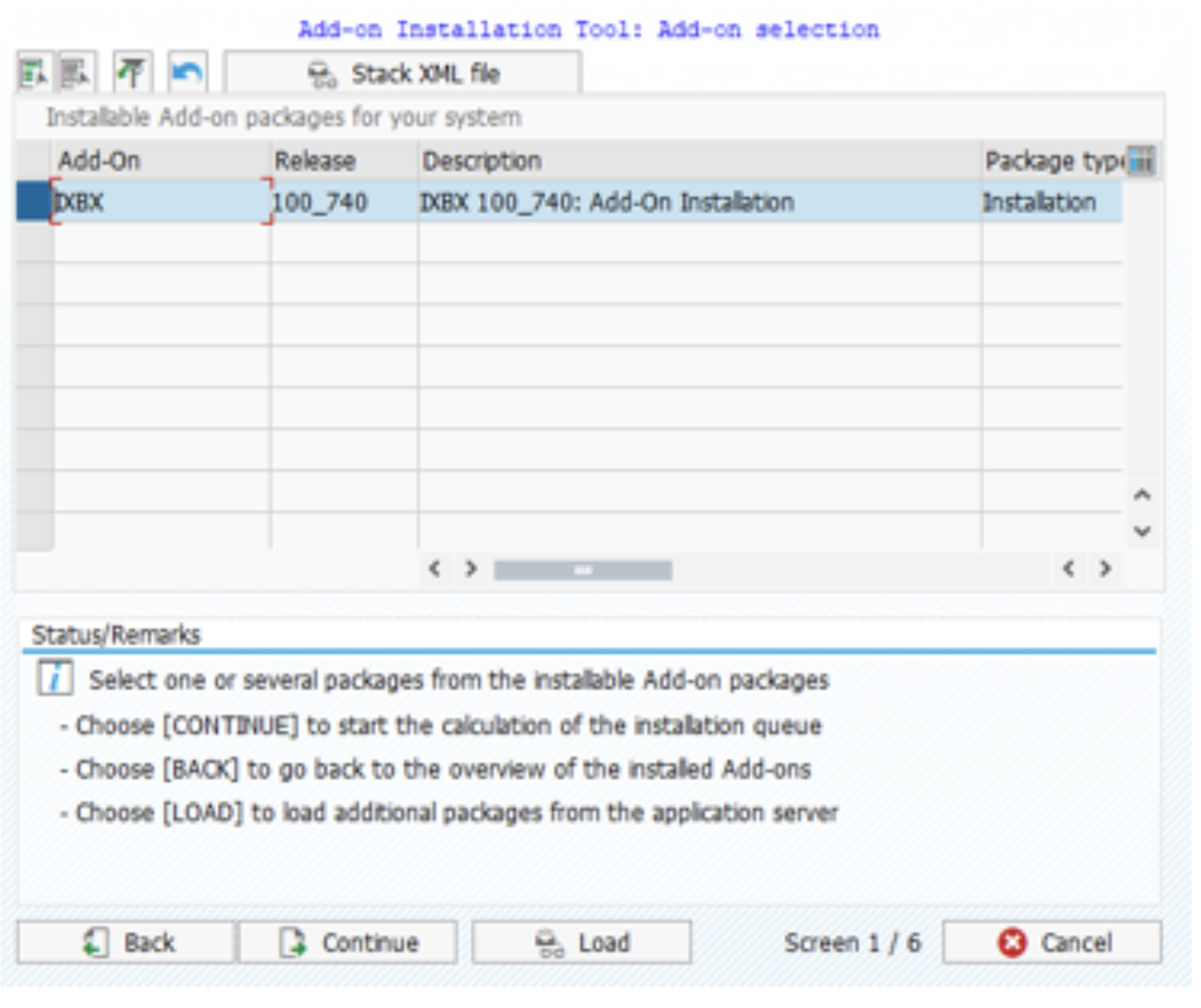- Go to SAINT. On the Installation Package tab, select Load packages then EPS files from the application server to import the Add-On installation file(s).