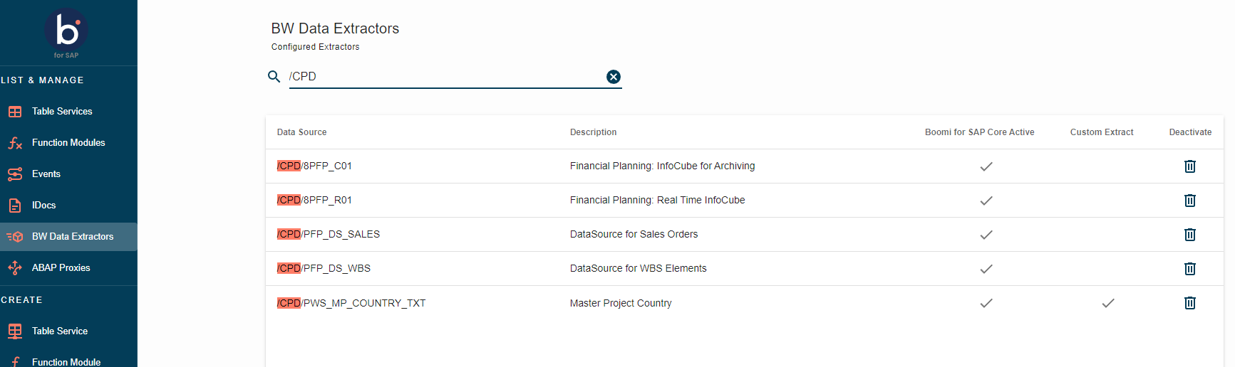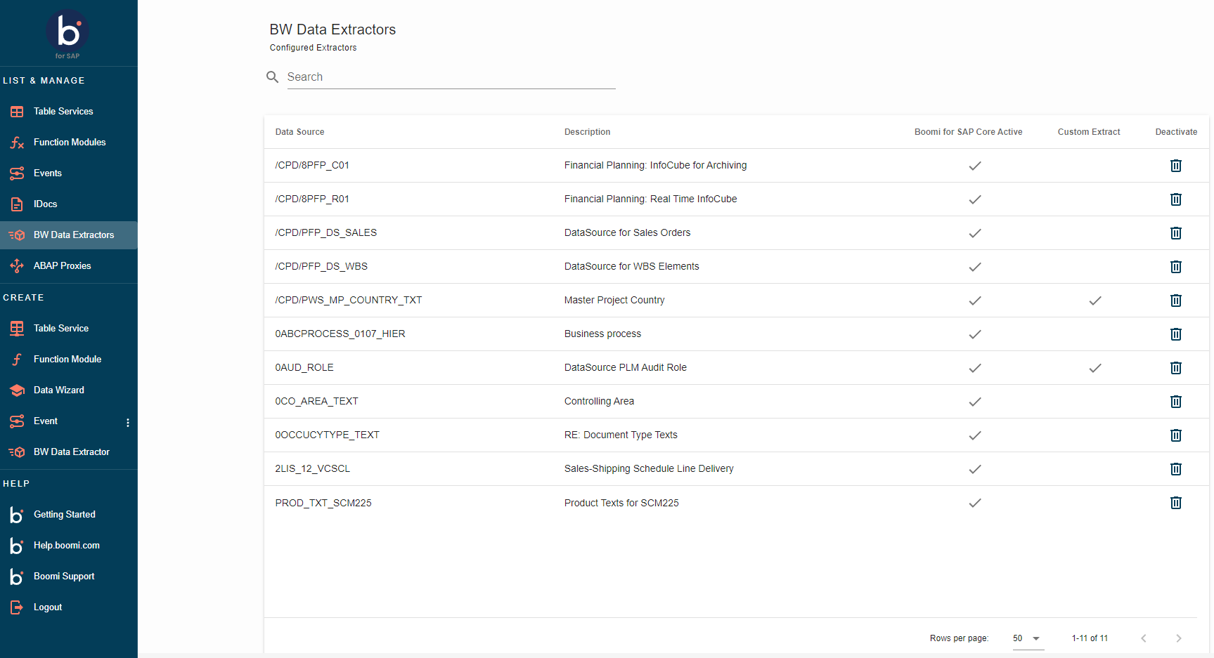 - Boomi for SAP Active: Indicates whether the BW Extractor has been activated for Boomi for SAP.