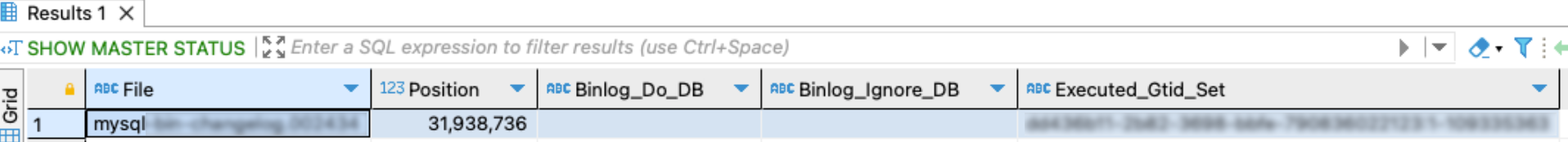 - To verify the GTID value, execute the following command on the MySQL Server: