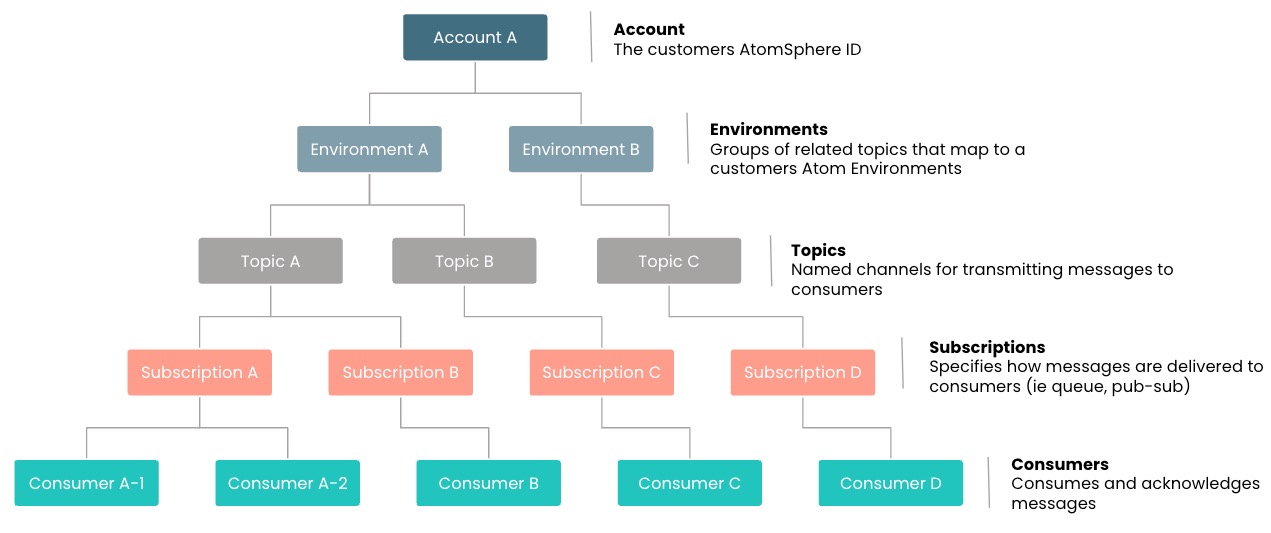 Subscriptions - Determine the delivery pattern used to send messages to consumers.