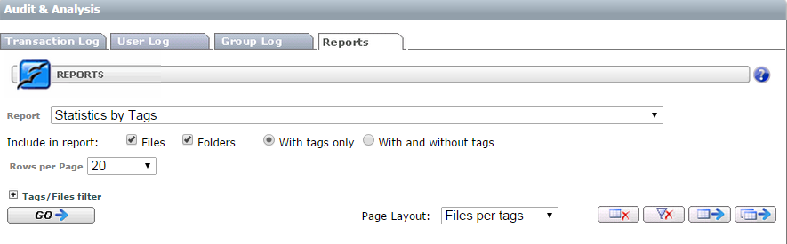 Select the Statistics by Tags report to run reports on files and folders based on the added tags.