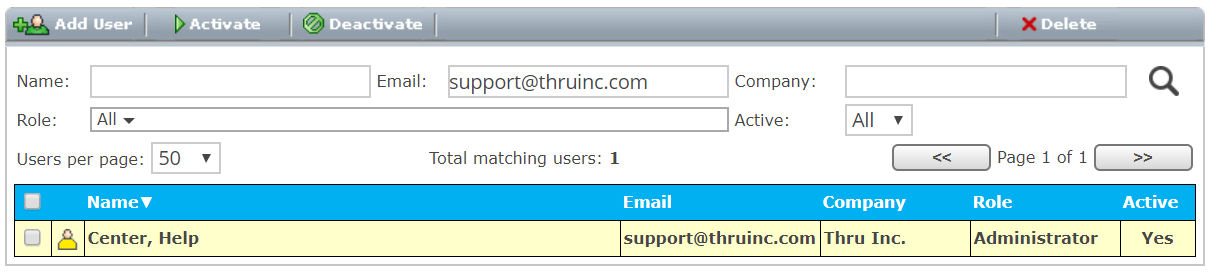 The User Management page shows current site users and provides options to create and manage all user accounts.