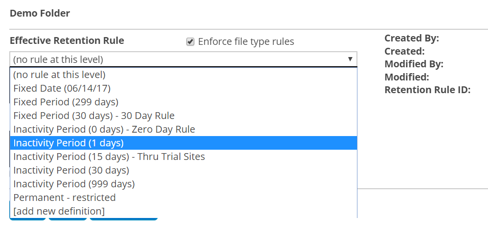 Creating a rule for a specific folder is similar to creating one for a file, except that you click the Retention tab for the folder.